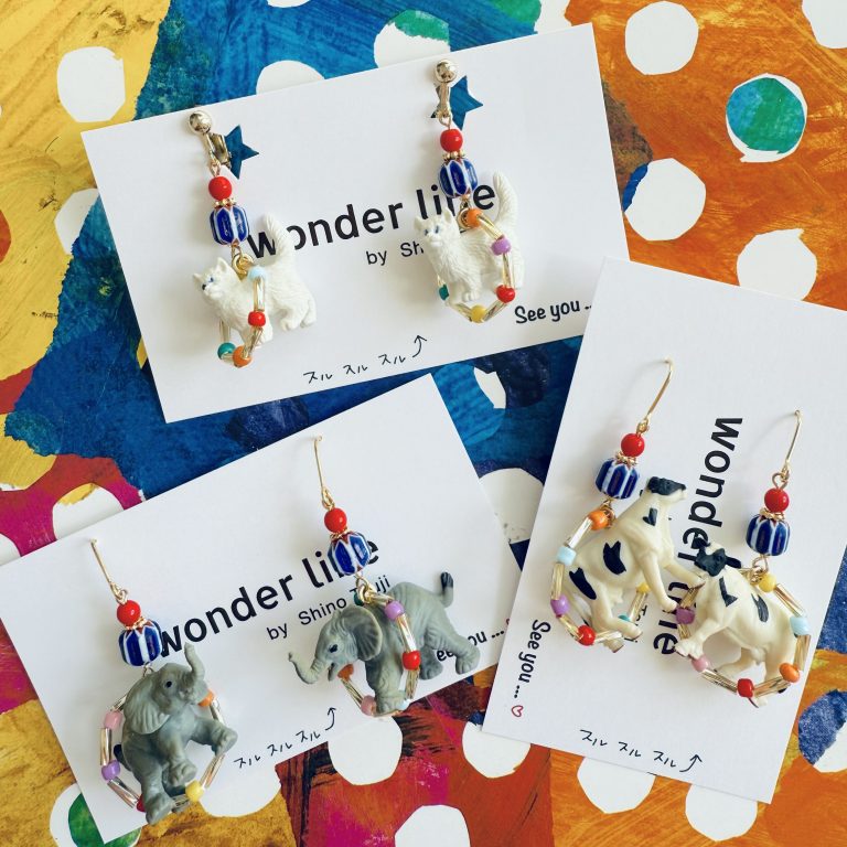 『カラフルPOPな世界観の中で宝探しを!』 をコンセプトにアクセサリーを製作・販売活動をしている 【min's made】と、 『見ているだけでも楽しい♪でもつけたらもっと楽しいアクセサリー』 を作っている 【wonder line】です。